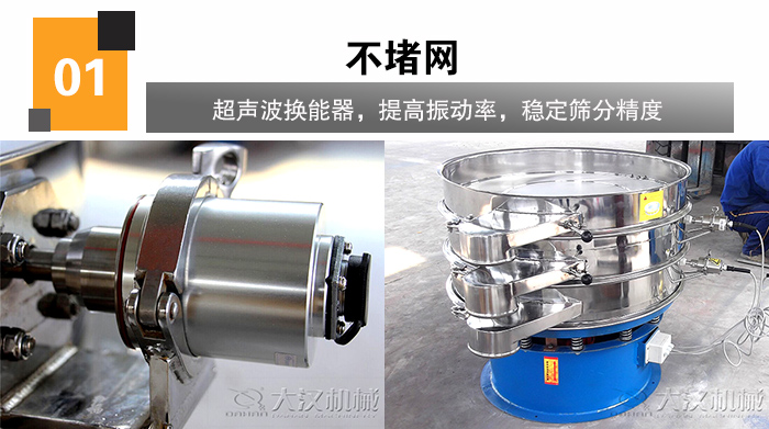 淀粉含水量高,易粘連堵網(wǎng),影響淀粉的篩分精度與產(chǎn)量,面粉超聲波振動(dòng)篩是將220V、50Hz或110V、60Hz電能轉(zhuǎn)化為36KHz高頻電能,輸入超聲波換能器,將其變成36KHz機(jī)械振動(dòng),保持網(wǎng)孔尺寸,可穩(wěn)定篩分精度,減少重復(fù)過篩次數(shù)。