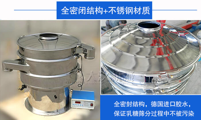 乳糖超聲波振動篩以全密封結(jié)構(gòu),再加上硅膠或橡膠材質(zhì)的密封件進行密封,然后德國進口膠水達到更好的密封效果,可以保證乳糖篩分過程中不被污染。另外,對于乳糖篩分來說,對其篩分環(huán)境的衛(wèi)生程度也有一定的要求,所以我們的超聲波振動篩選取的是304不銹鋼材質(zhì),經(jīng)由技術人員的拋光處理,操作更安全衛(wèi)生。