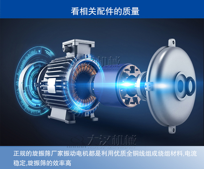 挑選旋振篩電機(jī)時(shí),要仔細(xì)聽(tīng)電機(jī)運(yùn)轉(zhuǎn)時(shí)有無(wú)雜音出現(xiàn)等,正規(guī)的旋振篩廠家選用的振動(dòng)電機(jī)都是利用優(yōu)質(zhì)全銅線組成繞組材料,銅線的電阻率低,線絲較細(xì),在振動(dòng)電機(jī)的定子線槽內(nèi)繞線圈數(shù)更多,電流就越穩(wěn)定,單位面積的通過(guò)電流量也就越大,大概是每平方毫米能通過(guò)5-8A電流,這就從根本上奠定了旋振篩的效率維持在較高的基數(shù)。很多不良商家為了以更低的價(jià)格吸引客戶并獲取更高額的利潤(rùn)差,就選用了一種稱(chēng)之為“漆包線”的劣質(zhì)振動(dòng)電機(jī)配備在自己的振動(dòng)篩里面。這種電機(jī)的繞組材料為鋁線,鋁線的價(jià)格要比銅線低很多,但電阻率高達(dá)0.028,電流穩(wěn)定性很差;且鋁線直徑要比銅線粗,同樣的定子線槽鋁線線圈數(shù)就要少多了,每平方毫米能通過(guò)的電流量大概是3-5A了。配備這樣的振動(dòng)電機(jī)怎么會(huì)有高的效率。