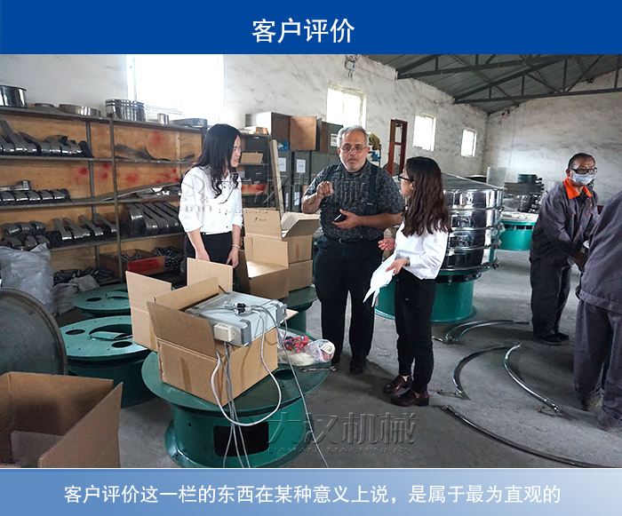 客戶評(píng)價(jià)這一欄的東西在某種意義上說(shuō),是屬于為直觀的,也是比較真實(shí)的,在購(gòu)買(mǎi)當(dāng)中,每一個(gè)消費(fèi)者都會(huì)去看的,以至于思考到底要不要購(gòu)買(mǎi),這也是比較真實(shí)的,客戶的好評(píng)會(huì)給旋振篩生產(chǎn)廠家加很多分。