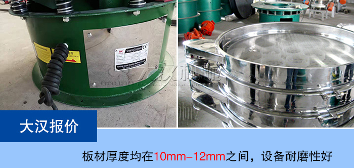大漢廠家生產(chǎn)的雙層旋振篩采用優(yōu)質碳鋼或不銹鋼材質,板材厚度均在10mm-12mm之間,設備耐磨性好,使用過程中不會因設備質量問題而造成設備停機問題,可以在很大程度上降低設備的維護費用。