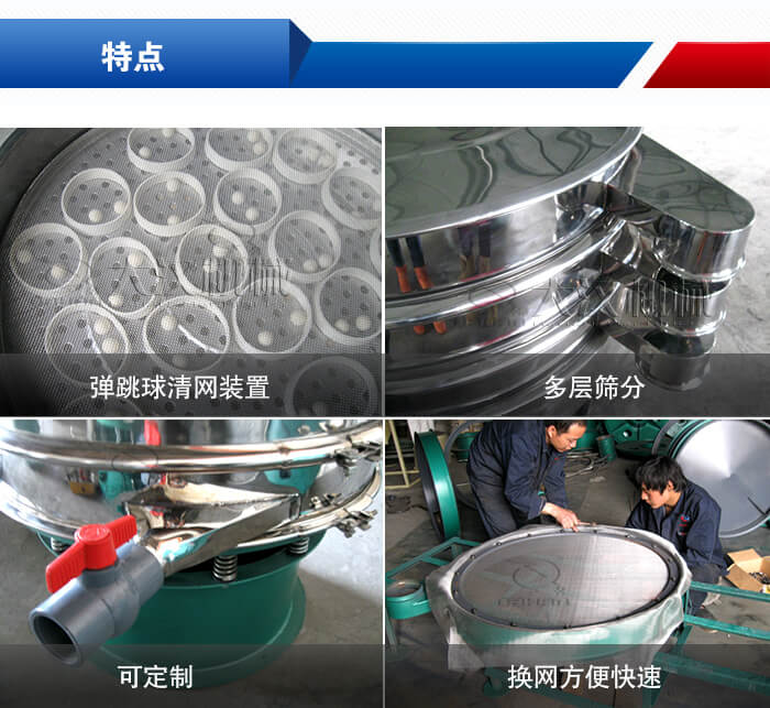 【優(yōu)勢(shì)】:①1-5層篩網(wǎng),可以同時(shí)進(jìn)行2-6個(gè)粒度規(guī)格的篩分和過(guò)濾;②篩分精度可達(dá)到500目,加裝彈跳球清網(wǎng)裝置,篩孔不堵塞,篩分精度高;③可以按照用戶(hù)要求免費(fèi)設(shè)計(jì)。