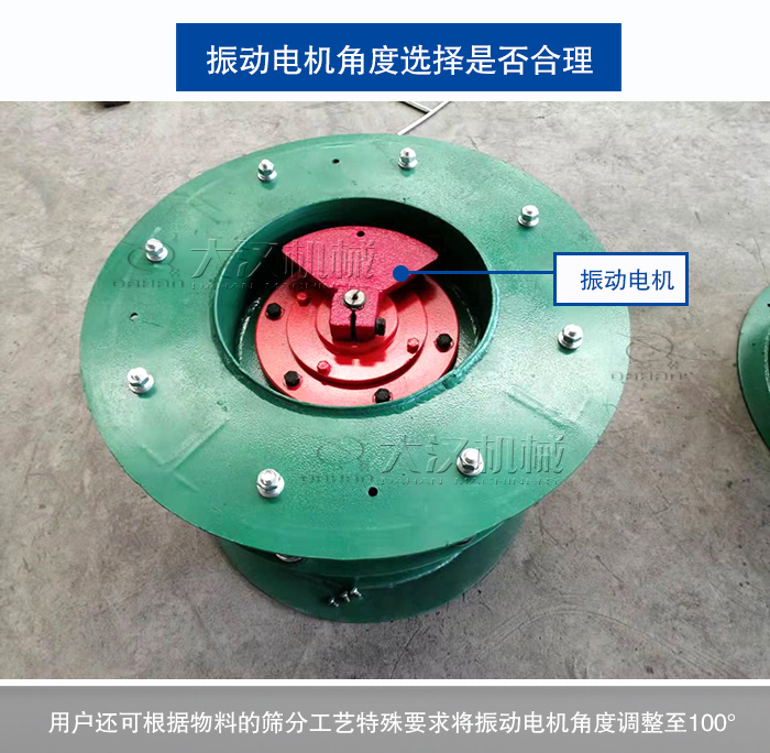 超聲波旋振篩振動電機(jī)上下兩端的偏心塊角度越小,物料在篩面上運(yùn)轉(zhuǎn)向外散開的越快,角度變大,物料向外散開的越慢。一般情況下振動篩出廠時電機(jī)角度為45°,用戶還可以根據(jù)其物料的篩分工藝特殊要求將振動電機(jī)角度調(diào)整至100°,物料則向篩網(wǎng)中央集中。需要根據(jù)不同物料進(jìn)行調(diào)整。