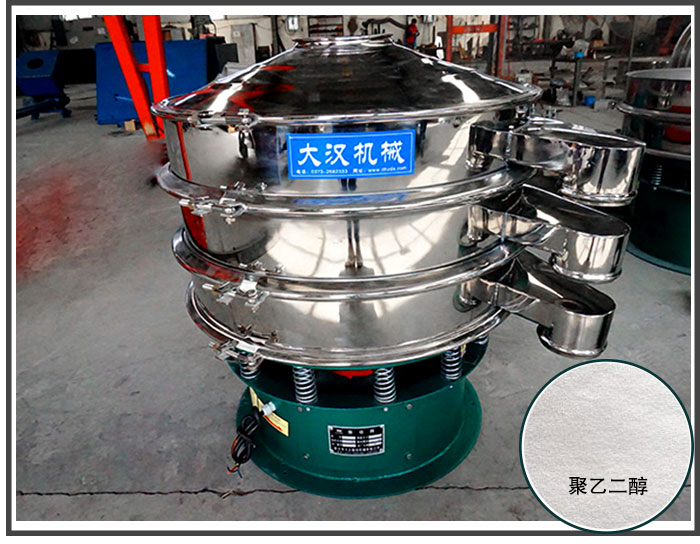 聚乙二醇在做成成品之前需要進(jìn)行除雜、分級(jí)處理,經(jīng)過振動(dòng)篩篩分處理之后可以提高聚乙二醇物料的質(zhì)量,那么聚乙二醇篩分選擇哪種比較合適?大漢振動(dòng)機(jī)械廠家推薦您使用旋振篩。