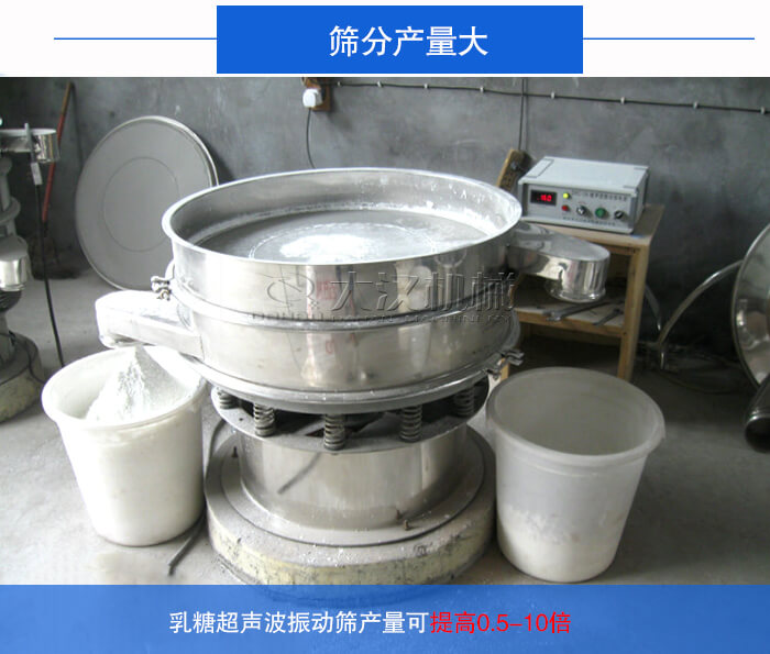 超聲波振動篩比不安裝超聲波的振動篩過網(wǎng)率增加5-20倍,篩分精度可提高1—70%,在保證篩分效果的前提下,乳糖超聲波振動篩產(chǎn)量可提高0.5-10倍。