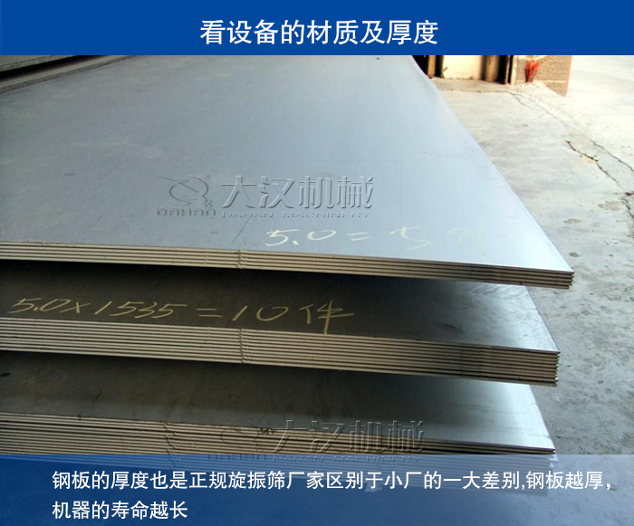 除了材質(zhì)的選擇方面外,鋼板的厚度也是正規(guī)旋振篩廠家區(qū)別于小廠的一大差別。旋振篩使用板材常見(jiàn)的有Q235碳鋼和304不銹鋼兩種,但其厚度的不同也可以直接影響銷(xiāo)售價(jià)格。我們拿常見(jiàn)的圓形振動(dòng)篩為例:一款直徑800的旋振篩市場(chǎng)售價(jià)在6500元-7300元之間,多用板材厚度在2mm,但如板材厚度降低到1.7或更低,價(jià)格上會(huì)大大降低,但是旋振篩在使用過(guò)程中極易出現(xiàn)篩框斷裂、出料口斷裂等問(wèn)題,正常的旋振篩的使用年限在5年左右,可這種鋼材差、鋼板薄的旋振篩可能使用半年就報(bào)廢了。