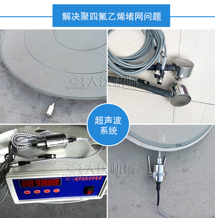 聚四氟乙烯在篩分時由于其物料性質(zhì)所以會容易出現(xiàn)堵網(wǎng)問題,超聲波旋振篩獨特的超聲波系統(tǒng)可以將可以將220V、50Hz或110V、60Hz電能轉(zhuǎn)化為18KHz的高頻電能,輸入超聲換能器,將其變成18KHz機械振動,加快物料的分離,減少篩上物,可以解決聚四氟乙烯堵網(wǎng)問題。