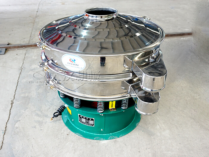 旋振篩是一種高精度細(xì)粉篩分機(jī)械,工作原理是由直立式電機(jī)作激振源,電機(jī)上、下兩端安裝有偏心重錘,將電機(jī)的旋轉(zhuǎn)運(yùn)動(dòng)轉(zhuǎn)變?yōu)樗健⒋怪?、傾斜的三次元運(yùn)動(dòng),再把這個(gè)運(yùn)動(dòng)傳遞給篩面。調(diào)節(jié)上、下兩端的相位角,可以改變物料在篩面上的運(yùn)動(dòng)軌跡,由于其振動(dòng)運(yùn)轉(zhuǎn)原理很多企業(yè)也稱之為“三次元振動(dòng)篩分過濾機(jī)”,根據(jù)外形結(jié)構(gòu)被部分客戶稱呼為圓形篩,從材質(zhì)上分標(biāo)準(zhǔn)型旋振篩和普通型旋振篩的,標(biāo)準(zhǔn)型的與物料接觸部分為304不銹鋼材質(zhì),底座為碳鋼材質(zhì),普通型的通體為普碳鋼材質(zhì)。